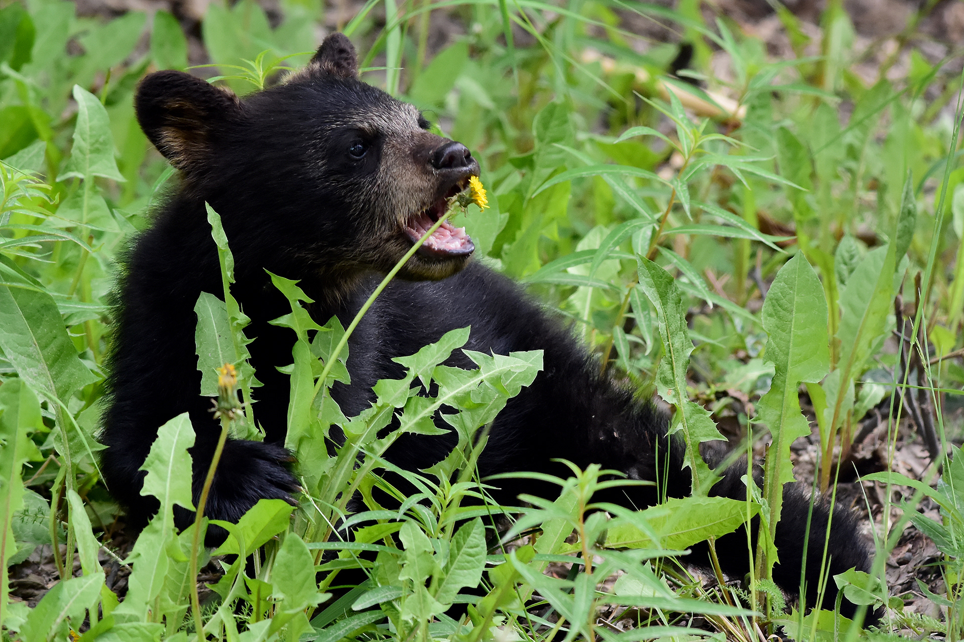 A young black bear washes its face in the Russian River.