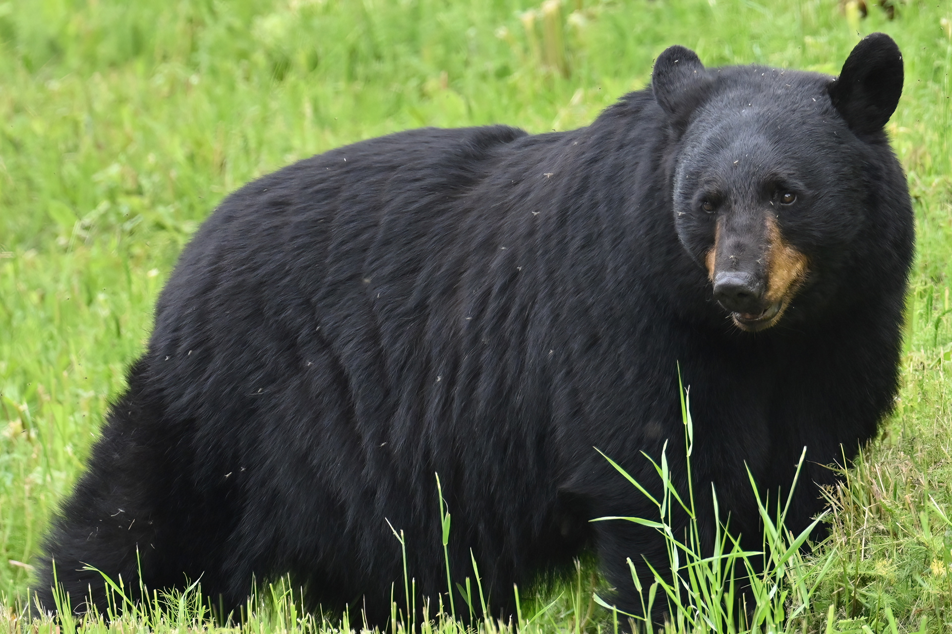 A black bear sow with two cubs at the Russian River.